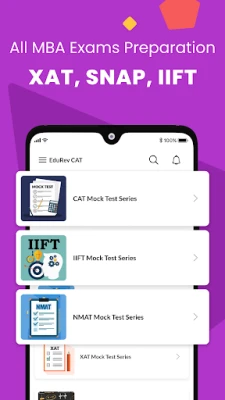 Förbered dig inför dina MBA-antagningsprov med överlägsen precision och effektivitet genom EduRev CAT Preparation App. Denna omfattande plattform, utvecklad av EduRev, är din kompletta partner för att bemästra CAT och andra ledande MBA-examina som XAT, IIFT, NMAT, SNAP och MAT 2026. EduRev strävar efter att förvandla utbildning till en glädjefylld och stressfri process, där högkvalitativ kunskap är tillgänglig för alla, oavsett plats, till en bråkdel av kostnaden. Med EduRev CAT Preparation App får du tillgång till all nödvändig information för att studera smartare och uppnå toppresultat.