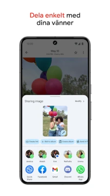 Google Foto är mer än bara en lagringstjänst; det är en plattform för att återuppleva och dela. Ta en nostalgisk resa bland dina gamla favoriter och dela smidigt foton, videor och album med dina kontakter, oavsett om de använder Google Foto eller inte. En av de mest uppskattade fördelarna är möjligheten att frigöra värdefullt utrymme på din telefon med ett enda tryck, eftersom alla säkerhetskopierade bilder tryggt finns kvar i molnet. Och när du vill ta dina minnen bortom skärmen, kan du förvandla dina bästa ögonblick till vackra fotoböcker, utskrifter eller canvastavlor, tillgängliga i utvalda regioner. Dessutom får du tillgång till Google Lens direkt i Google Foto, vilket låter dig söka information om det du ser på bilderna.