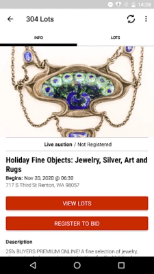 MBA Seattle Auction app låter dig delta i våra live- och tidsbestämda auktioner. Förhandsgranska, följ och lägg bud på fin konst och antikviteter från Northwest Estates, inklusive måleri, skulptur, asiatisk konst och sällsyntheter, direkt från din mobil eller surfplatta. Delta i våra försäljningar när du är på språng.