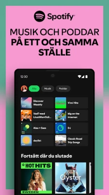 Kliv in i Spotifys gränslösa ljudvärld, där varje stund får sin perfekta soundtrack. Med en katalog som innehåller över 80 miljoner låtar och fyra miljoner poddar – och ständigt växer – är det din ultimata destination för ljudunderhållning. Oavsett om du söker den senaste hitlåten, vill utforska dolda pärlor från svunna årtionden, eller dyka djupt in i engagerande berättelser, erbjuder Spotify en skräddarsydd upplevelse. Upptäck nya stjärnor som The Weeknd och Harry Styles, eller sjung med i Taylor Swifts senaste med vår dynamiska textfunktion. Skapa egna spellistor för varje humör, eller låt oss överraska dig med personliga Daily Mix-rekommendationer baserade på din unika smak. Starta din resa med gratis lyssning på mobil och surfplatta, och få tillgång till en värld av musik genom att blanda album och spellistor.